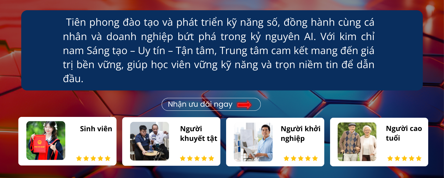 Trung tâm phổ cập AI không chỉ là ngôi trường mà còn là mảnh đất tốt của tình yêu thương được ươm ầm và tăng trưởng. Học viên tại Trung tâm luôn được tôn trọng, xây dựng vào được chấp nhận để cùng nhau phát triển trong tình yêu thương và sự tin tưởng. Hãy đến cảm nhận và trải nghiệm cùng chúng tôi.